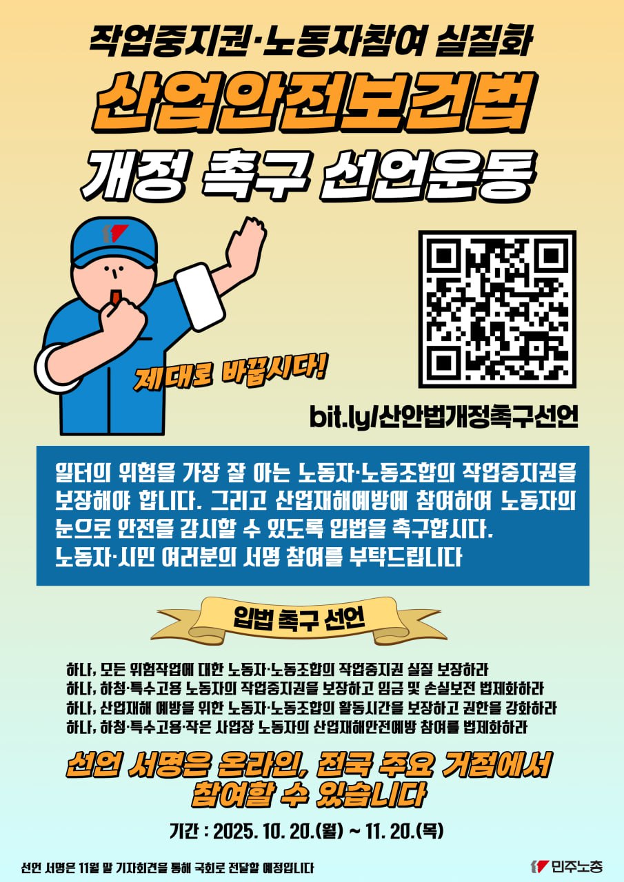 위험하면 멈출 권리, 작업중지권! 노동자 참여로 안전한 일터를!