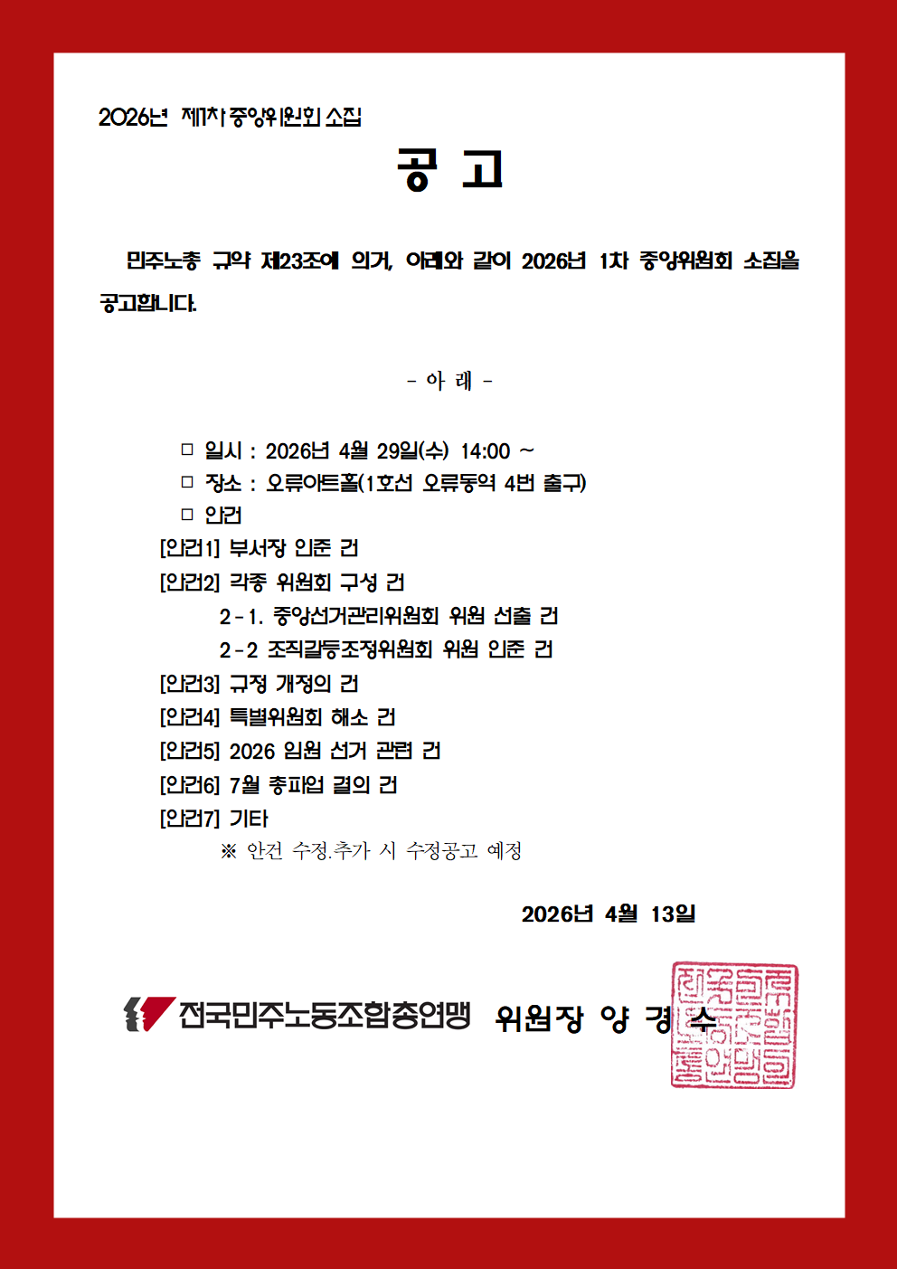 2026년 민주노총 투쟁과제 "함께 꾸는 꿈은 현실이 됩니다"