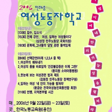 민주노총 여성노동자학교 9월22-23일, 모입시다
